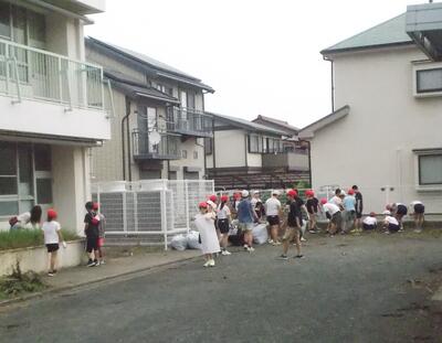 朝の活動の時間を使って、「親子除草」として除草を行いました。PTAからの呼びかけもあり、多くの保護者の方にもご参加いただいて実施できました。
