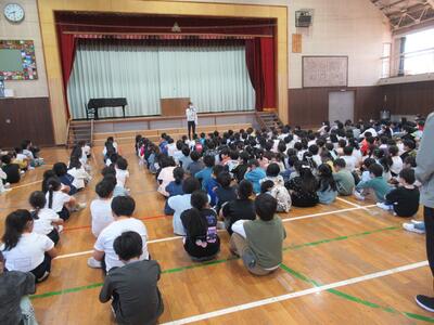 火曜日は朝の活動があります。今日は全校朝会でした。