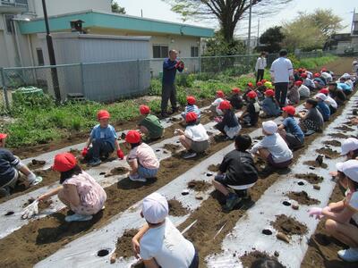 いつもお世話になっている藤野さんに準備をしていただき、植え方も教えていただきました。