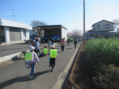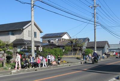 今日から1年生が一緒に登校しました。1年生のことを気遣って、ゆっくり歩く班長さん。3月までよりも10分以上、時間がかかっていました。おかげでみんな無事に学校へ到着することができました。