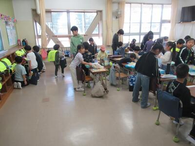 1年生の教室では、6年生が待っていて、1年生の手伝いをしてくれました。