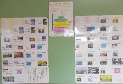 校長室前の掲示板にも動画スライドの内容を掲示しています。