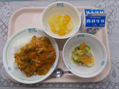 もりのカレーライス 牛乳 ハムいりサラダ クラッシュゼリー