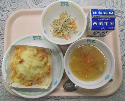 チキンドリア 牛乳 ごぼうサラダ だいこんのスープ