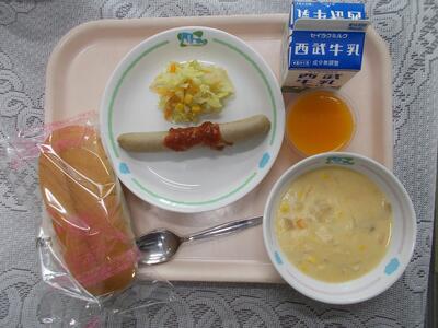 コッペパンスライス ロングウインナー カレーコールスローサラダ キャロットチャウダー とことこゼリー
