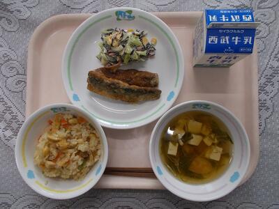 だいずごはん 牛乳 イワシのかばやき ひじきのうめマヨサラダ すましじる