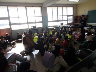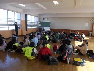 一斉下校 投稿: 富岡小 (01/08) カテゴリー: 学校行事 毎学期の最初の日の下校は一斉下校です。まず、地区ごとに集まって、地区担当の先生から話を聞いたり、通学時の様子を確認したります。この後、遠い地区から順番に下校しました。明日からの登校も、気を付けて登校しましょう。