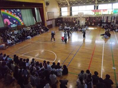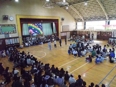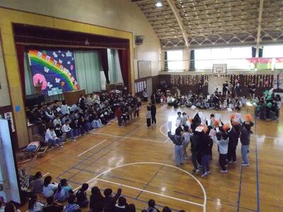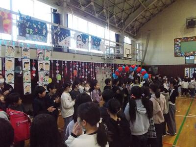 6年生を送る会を行いました 投稿: 富岡小 (03/04) カテゴリー: 学校行事 6年生を送る会を行いました。先週、6年生の1クラスが学級閉鎖になったため、1週間延期しました。今日は、そのクラスも全員出席でした。 各学年から、学年ごとに趣向をこらした出し物を6年生に見せました。最後は、感謝の気持ちを込めて6年生を送り出しました。とても素敵な会になりました。