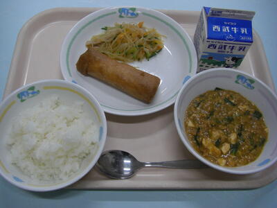 4月22日 ほかほか豆腐と、春を告げるパリパリ食感 投稿: 校長 (04/22) カテゴリー: 給食コーナー 湯気がふわりとあがるマーボーどうふは、ごはんが進む本日の主役。お隣には、心地よい音が響くパリパリはるまきと、さっぱりとしたバンサンスーが彩りを添えます。心もお腹も満たされる、午後の活力源です。