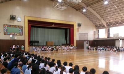 5年生や5くみのみんなによる元気な挨拶の呼びかけも響き、体育館全体が温かい笑顔に包まれた素敵なひとときとなりました。